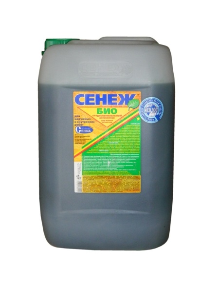 Антисептик СЕНЕЖ БИО предназначен для усиленной защиты древесины от гниения, плесени, синевы и насекомых-древоточцев при эксплуатации в непосредственном контакте с человеком и домашними животными внутри помещений и на открытом воздухе в особо тяжелых условиях увлажнения, длительном воздействии атмосферной или почвенной влаги, при контакте с грунтом, органическими отходами, в том числе, в условиях тропического и тропического влажного климата самостоятельно или в качестве биозащитной грунтовки под ЛКМ.