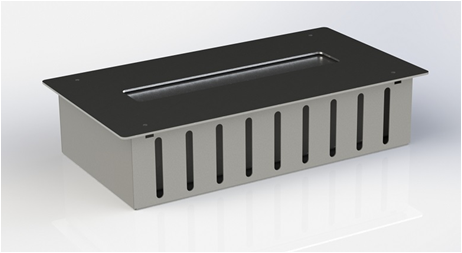 Топливный блок снабжен специальной шторкой, которой можно регулировать высоту пламени и при необходимости погасить его. Не требует подключения к дымоходу.