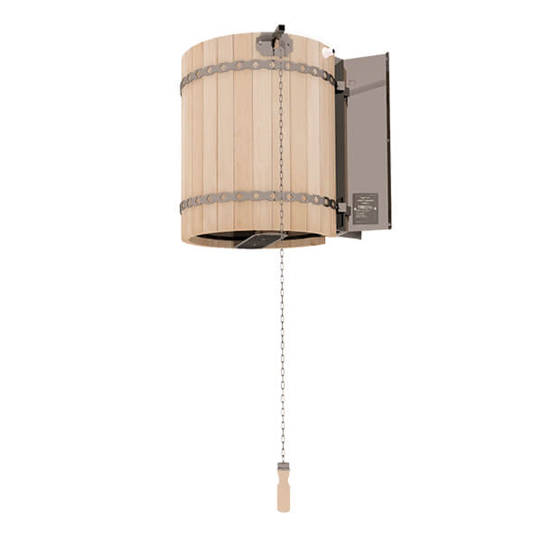 У обычных обливных ведер объем воды составляет 10-12 литров, что явно недостаточно для эффективного и единовременного охлаждения тела. В результате возникает дисбаланс между разогретыми и охлажденными его участками. В обливном устройстве «Ливень®» запас воды составляет приблизительно 50 литров (в зависимости от исполнения), что эффективно позволяет охладить тело после самого интенсивного парения. Специальный рассекатель формирует поток изливающейся воды таким образом, чтобы полностью охватить тело человека и охладить его.