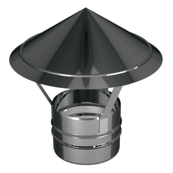 Зонт предназначен для предохранения дымохода от атмосферных осадков и герметизации системы сэндвич.