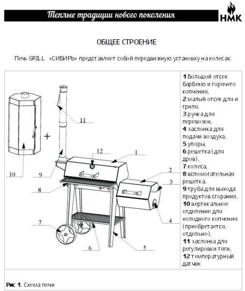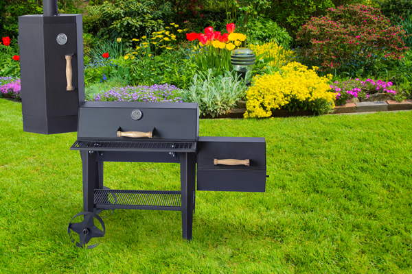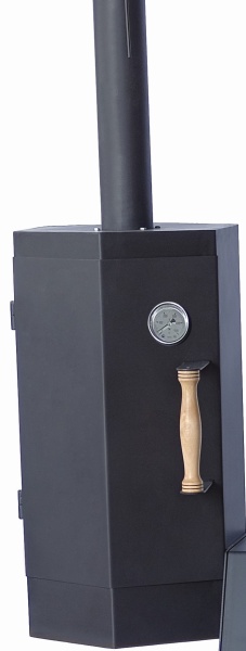 Конструкция сочетает в себе барбекю, гриль, коптильню холодного и горячего копчения − фактически 4 в 1. С виду выглядит как усовершенствованное классическое барбекю.