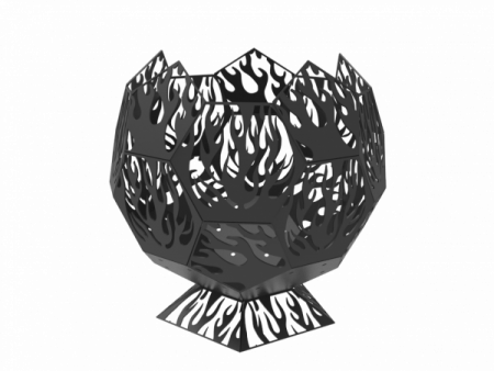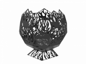 Чаша выполнена из стали толщиной 3,0мм, что позволяет костровищу не деформироваться на всем протяжении использования. Изделию не страшны перепады температур и высокая влажность. Пламя, отбрасывающее тени через отверстия в стенках, будет создавать магическую атмосферу в тёмное время суток. Дизайн очага выполнен в форме сферы, состоящей из пятиугольников. главное достоинство очага – красивый дизайн стенок в виде всполохов пламени. На фоне настоящего огня это создаёт незабываемую игру света и тени.