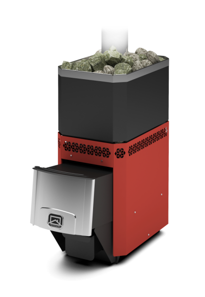 • Выход дымовой трубы смещен от края к центру каменки, что значительно упрощает монтаж дымохода.