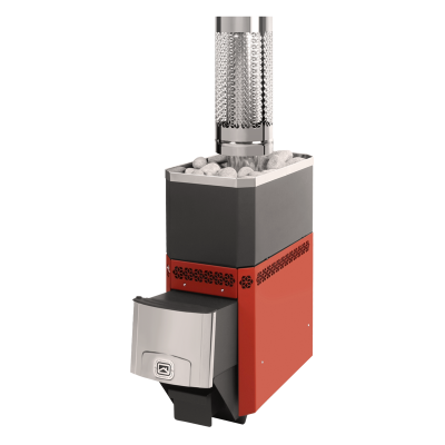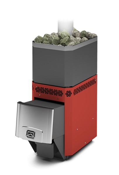 • Выход дымовой трубы смещен от края к центру каменки, что значительно упрощает монтаж дымохода.