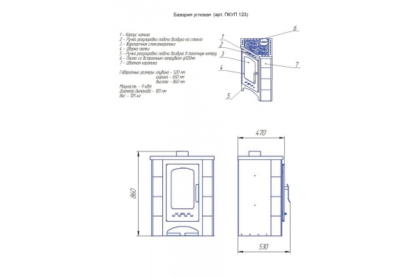 Печь-камин БАВАРИЯ угловая с чугунной плитой (РК 123)