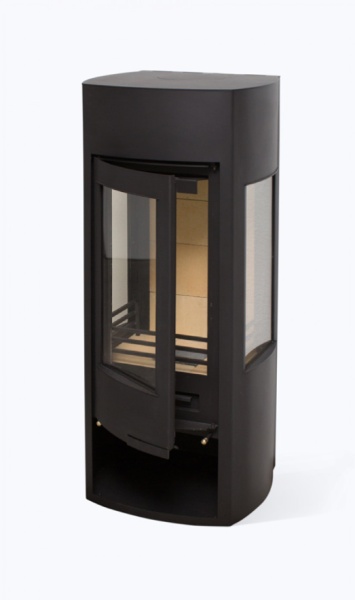 Оборудована большой остекленной дверкой выполненной в одной плоскости с корпусом печи и с двумя боковыми стеклами.