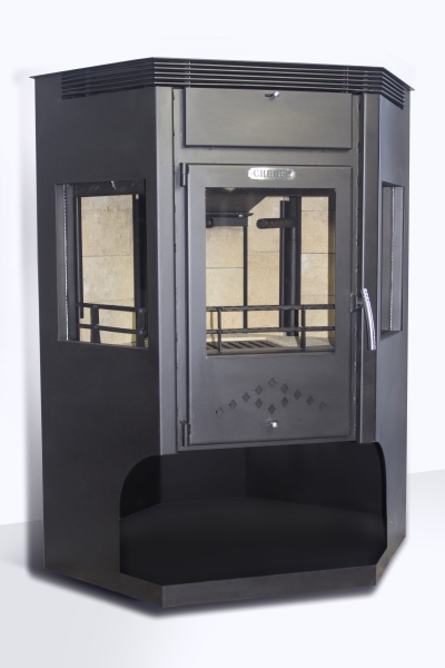 В конструкцию печи-камина "Сибирь" - 15 кВт внедрена доработанная система дожига вторичных газов, позволяющая увеличить КПД камина и скорость нагрева загородного дома. Данную печь можно использовать как полноценный камин, который украсит и стилизует любой современный интерьер.