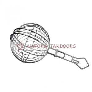 Откройте решетку-гриль и положите тушку курицы на полукруг с ручкой, закройте другой половинкой «шара» и подвесьте на приспособление для подвешивания шампуров.Решетка-гриль «Шар» предназначена для запекания крупных кусков мяса, курицы целиком, рыбы и пр.