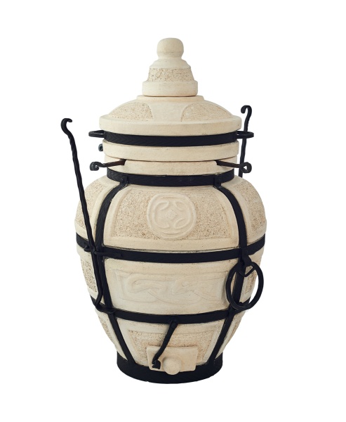 Тандыр Амфора производится из экологически чистых отечественных керамических огнеупорных материалов, обжигается при температуре свыше 1100 градусов Цельсия, для прочности и красоты оковывается металлом. Несмотря на то, что при использовании могут возникать волосяные трещины, стальная оковка с элементами ковки прочно удерживает тандыр. Срок службы тандыра не ограничен, при правильном использовании, он вам прослужит годы и десятилетия.