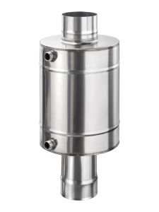 Для этой цели на дымоход печи устанавливается универсальный регистр (теплообменник), из нержавеющей стали с двумя штуцерами ¾ дюйма, который с помощью соединительных труб и дренажного крана соединяется с выносным баком.
